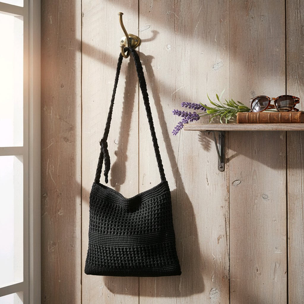 Η καλοκαιρινή πλεκτή τσάντα ώμου σε boho στυλ αποτελεί μια ξεχωριστή επιλογή για όσες αγαπούν τα ελαφριά και φυσικά αξεσουάρ. Η πλέξη φιλέ με βελονάκι δημιουργεί μια αέρινη αίσθηση, ιδανική για τις καλοκαιρινές εμφανίσεις.